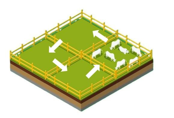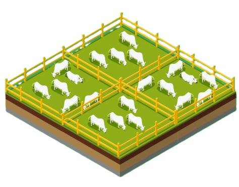 De modo geral teremos 50% dos pastos da fazenda ocupados e os outros 50% descansando, sendo este modelo uma forma de intensificação, como uma forma de colheita mais eficiente do capim com reflexo positivo no desempenho.