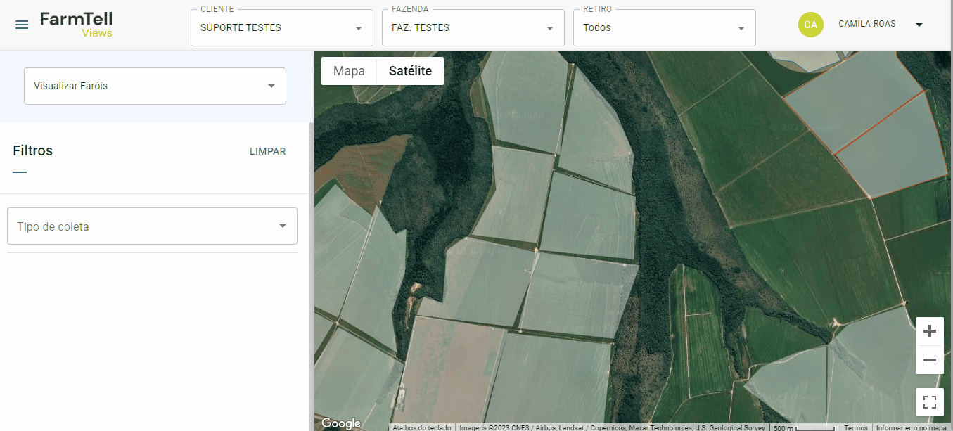 Visualização das informações coletadas no aplicativo dentro do mapa da fazenda, gestão e cadastro de informações.