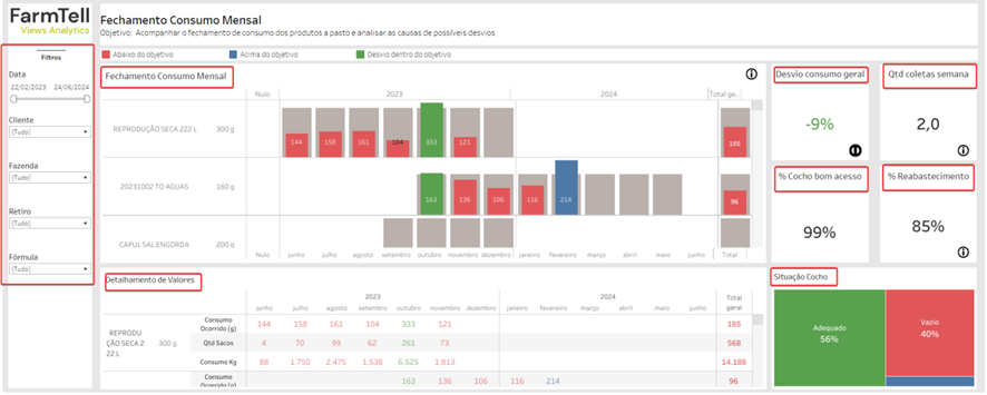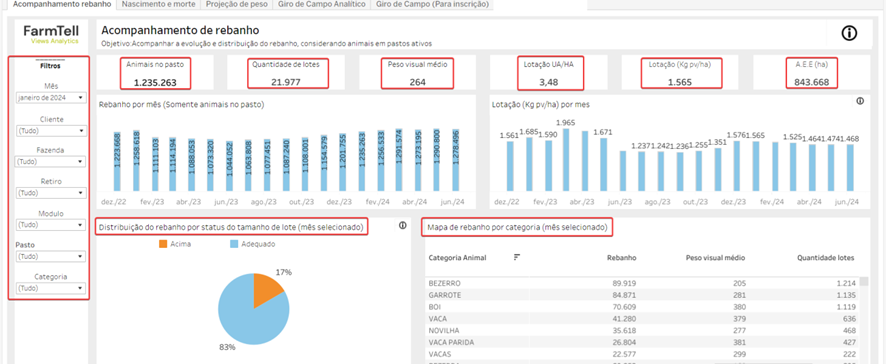 Check da eficiência da operação, plataforma de análise de dados, evolução do rebanho em tempo real.